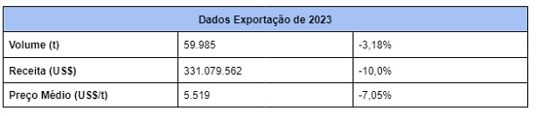 Faltou uma masterbox para o Brasil fechar em 60 mil toneladas exportadas