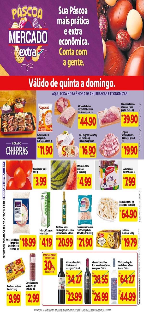 No Extra, por sua vez, o bacalhau do porto em pedaços a granel está custando R$64,90 o kg. Ainda para quem prefere camarão, o crustáceo descascado, cozido e congelado da Qualitá 42/50 sai por R$ 21,90, pacote tem 200 gramas.