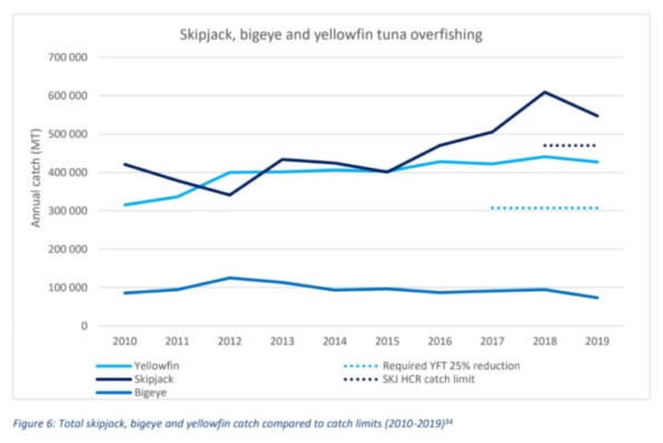 A redução da produção pesqueira na comparação a 2018 foi de 0,2%, determinada principalmente pela diminuição de 4,3% nas capturas, principalmente nas de biqueirão - uma espécie de anchova que ocorre no Mar Mediterrâneo (-39,7%) e outras espécies pelágicas. Também houve redução nas capturas de atum.