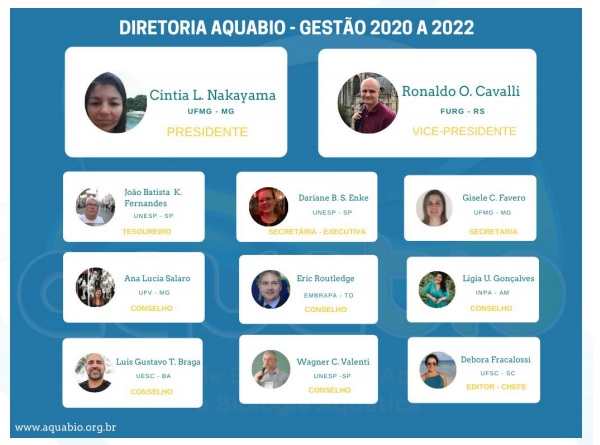 Tomou posse em em 10 de novembro de 2020 a nova Diretoria da Sociedade Brasileira de Aquicultura e Biologia Aquática (Aquabio), para o biênio 2020-2022.