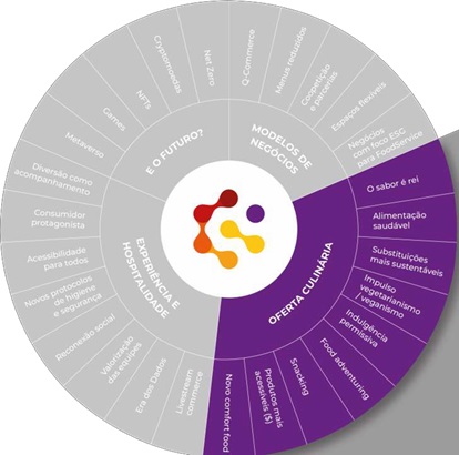 O estudo mapeia os principais temas do segmento alimentício fora do lar com base em quatro áreas principais, sendo elas: modelo de negócios, oferta culinária, experiência e hospitalidade, além de um direcionamento para o que se espera no futuro.